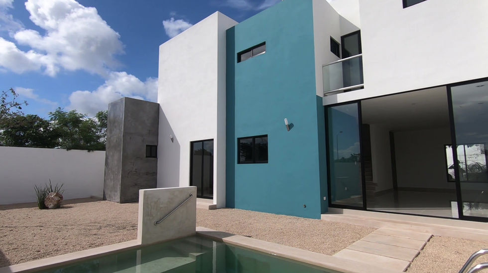 En planta baja, contamos con una amplia cocina, que puede ser con barra de granita y de concepto cerrado a la sala, o bien puedes optar por un concepto abierto, con Isla en la cocina y carpintería. Tiene una amplia sala-comedor corridos, amplio jardín, y como es clasico en todos nuestros mdoelos incluimos una piscina de 4x5 metros con acabado en Chukum.