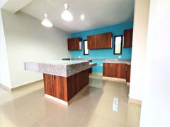 En planta baja contamos con una amplia sala-comedor corridos, con vista al jardín, así como una cocina con isla y concepto abierto. En el jardín tenemos una piscina de 4 x 5 metros con acabado chukum, y al frente espacio para dos vehículos con concreto estampado y jardín de diseño al frente con pasto y arboles.